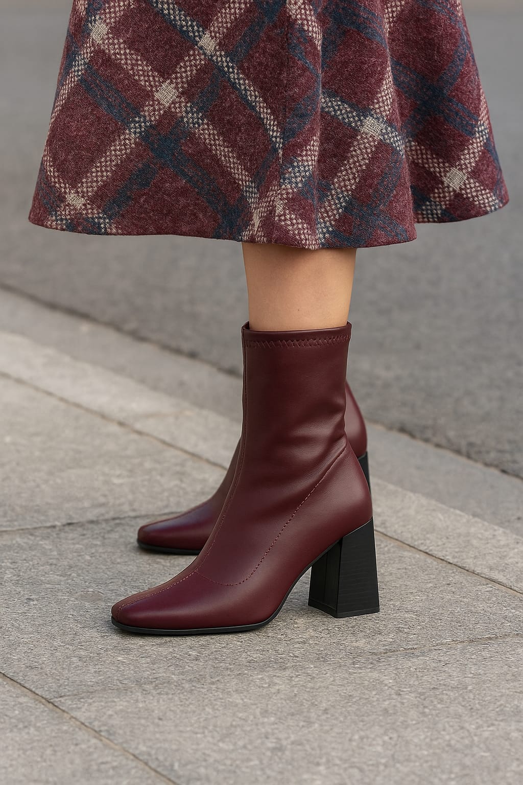 Descubre el equilibrio perfecto entre estilo y comodidad con esta bota de cuero granate de caña media. Su diseño sencillo y elegante la convierte en un complemento ideal para cualquier look, desde los más casuales hasta los más sofisticados.