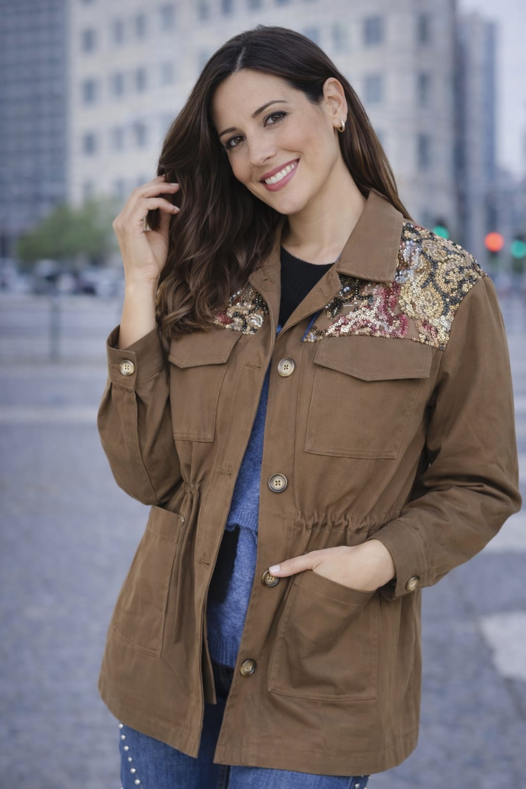 Presenta cuatro bolsillos frontales de estilo utilitario, cierre con botones y un cordón ajustable en la cintura para adaptar la silueta. El tejido es estructurado pero cómodo, ideal para looks casuales con un punto arreglado. Una prenda versátil y con mucho estilo.