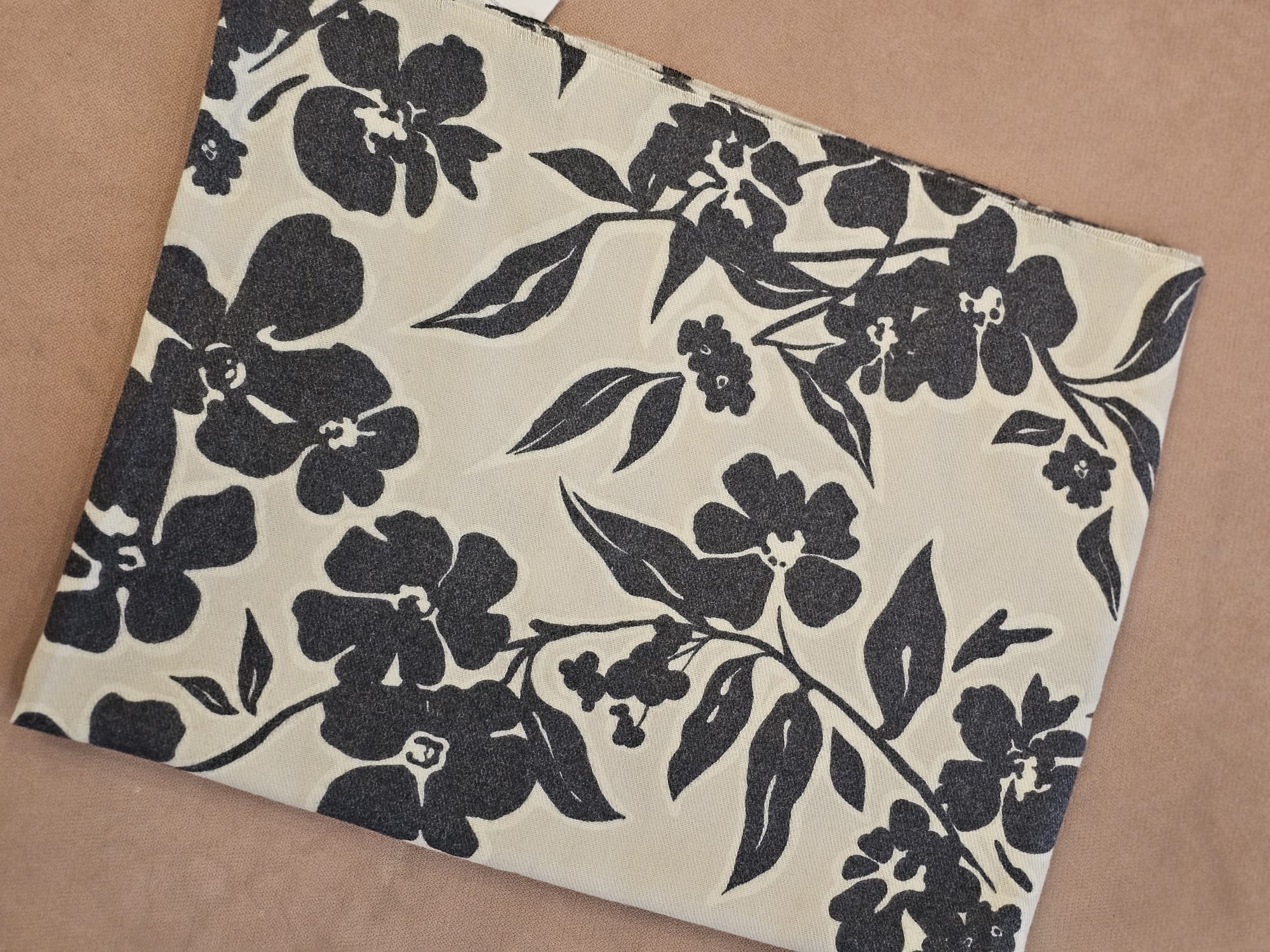 Bufanda ligera con estampado floral en tonos negro y blanco. Perfecta para dar un toque original y elegante a tus looks diarios.