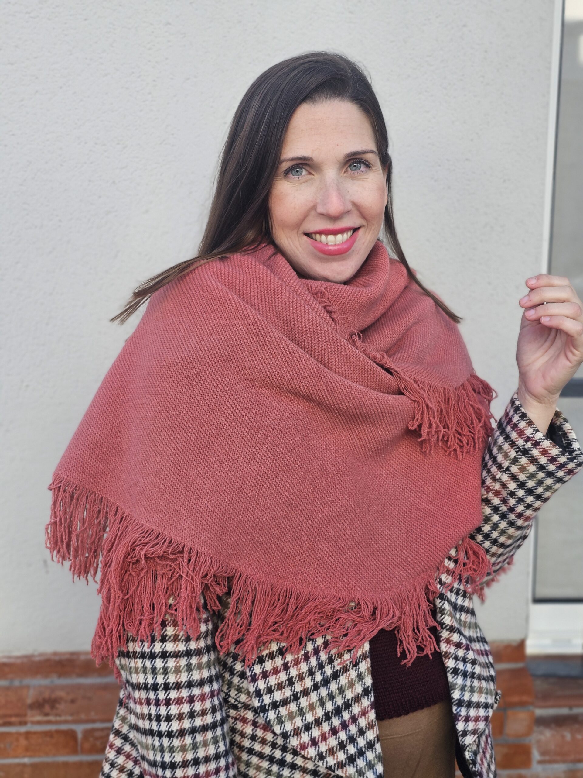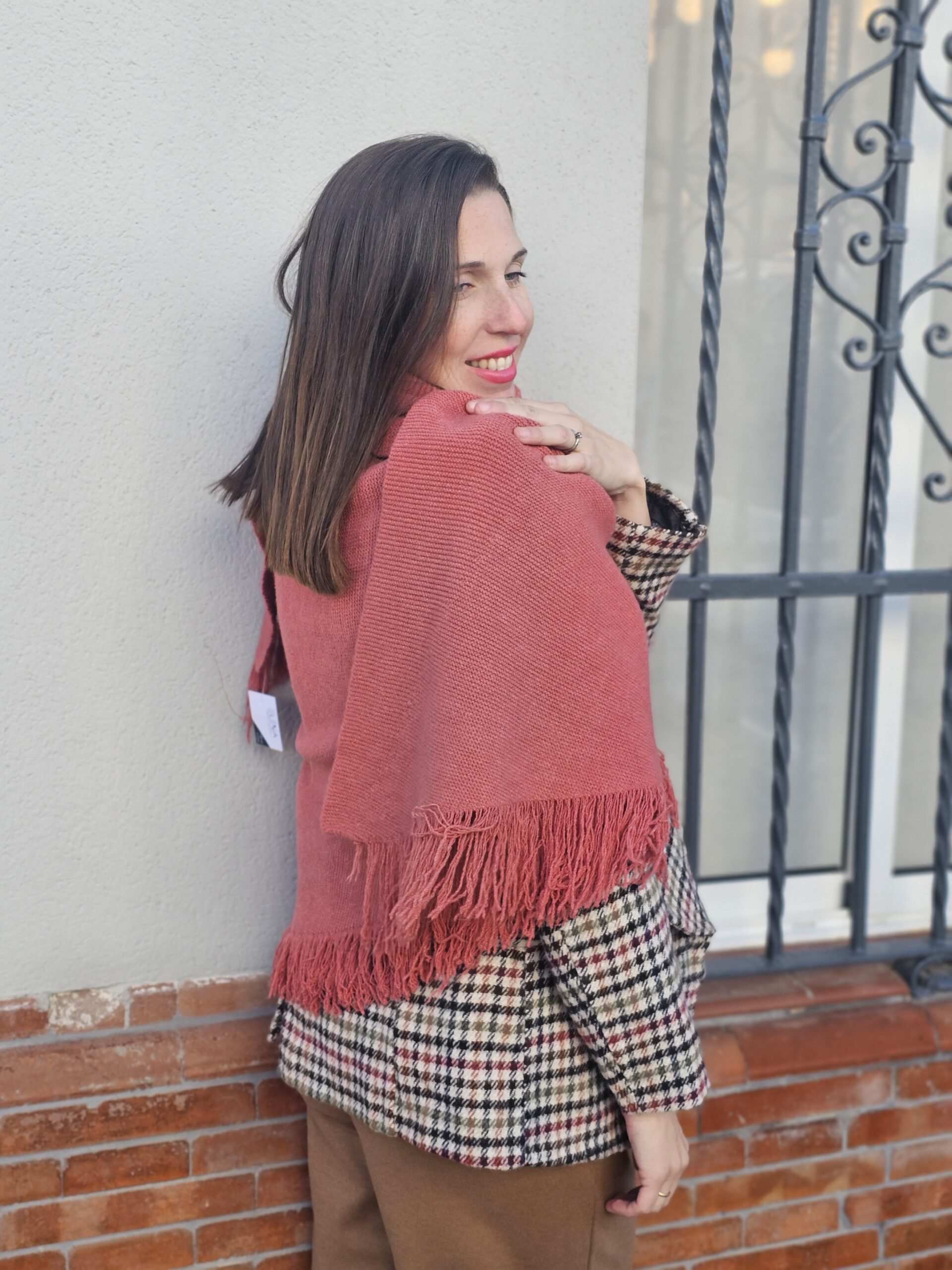 Poncho de punto con flecos en tono teja, suave, cálido y perfecto para completar tus looks de otoño e invierno. Su caída envolvente y el acabado con flecos aportan un toque elegante y muy favorecedor. Ideal para combinar con abrigos, jerseys y prendas básicas.