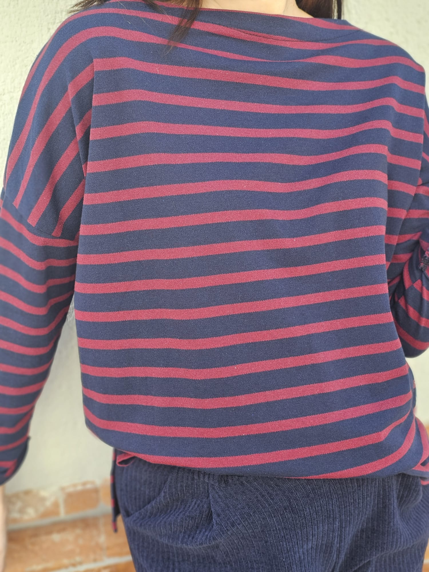 Chaleco de rayas azul y morado, de diseño moderno y versátil. Aporta un toque elegante y actual a cualquier look, ideal para llevar sobre blusas o camisetas y crear conjuntos con estilo tanto casuales como más arreglados.
