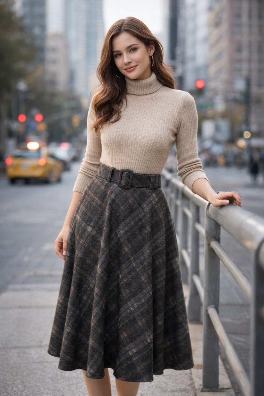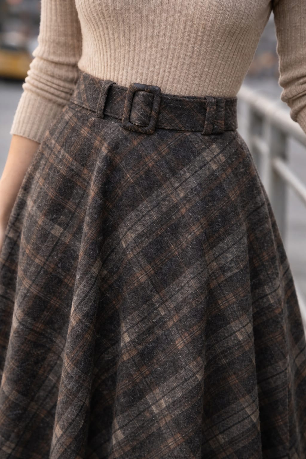6856 Falda cuadro cinturon gris oscura
