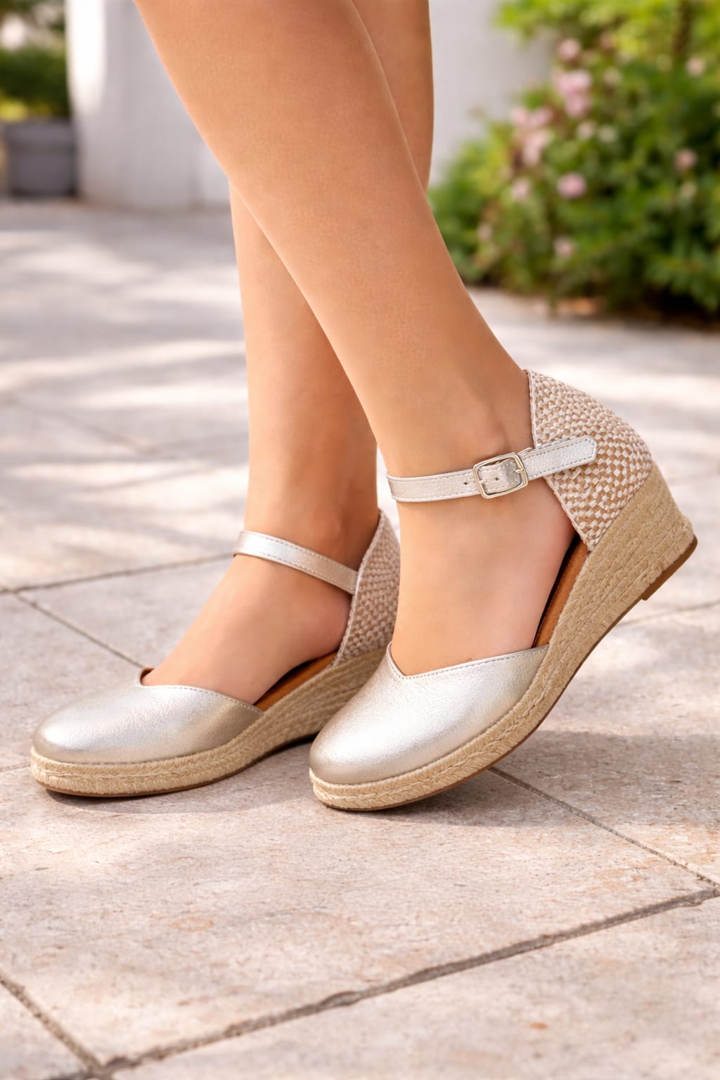 Yutes de tres cuerdas en color plata, elegantes y muy versátiles para el día a día. Incorporan plantilla de gel para una pisada cómoda durante horas y cierre de hebilla de piel que aporta sujeción y un acabado de calidad. Fabricadas en España, combinan diseño y confort para completar cualquier look de temporada. ✨